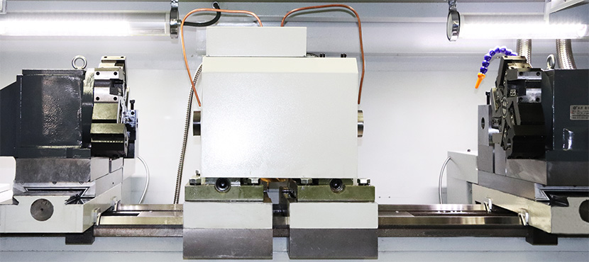 STC100數(shù)控雙頭車床系統(tǒng)配置為雙通道,進(jìn)給軸四軸四聯(lián)動(dòng),左右通道同時(shí)加工。